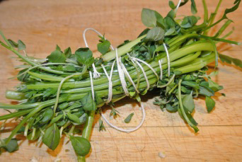 1 suppevisk med pesillestilke, timian, merian eller oregano