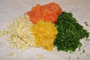 Under en højlydt demonstration af Olga fremgik det tydeligt, at for at få den rette smag i suppen, skal hvidløg, persille og en del af tomaterne, samt revet citronskræl tilsættes umiddelbart inden servering, hvilket jeg er helt enig i.
